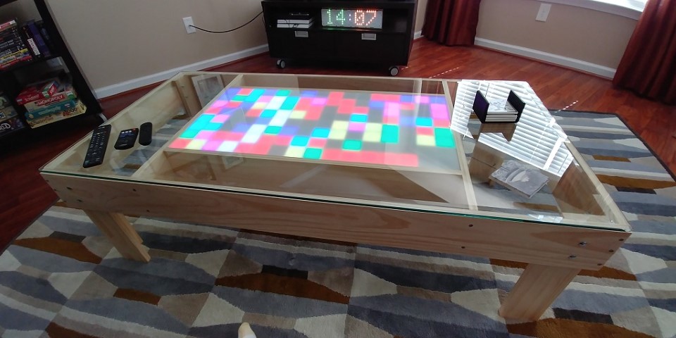 And that’s pretty much it! I’m glad that I finally had the motivation to finish this project, as I’m quite pleased with how it turned out. There’s a few things I would do differently in terms of how the construction took place, but those are more in the realm of “measure twice, cut once” and “plan before you do.” In terms of cost? Ahh, well let’s not include time spent in that, shall we? Hehe. From a materials standpoint, I’d say about $500 all said and done for electronics and wood/plastic/glass. The glass sheet was the biggest ticket item, coming in around $200US from Amazon. The plastic diffuser was custom cut from TAP Plastics for about $50. I already had the LEDs and the Pi/Battery, but I’m ball-parking there cost in there as well. So yeah, expensive for a coffee table, for sure, but I’m really happy with the results, and I can point to it and say “I made that” :)
