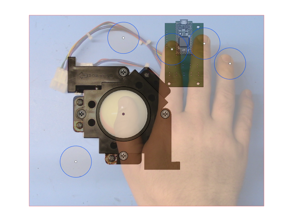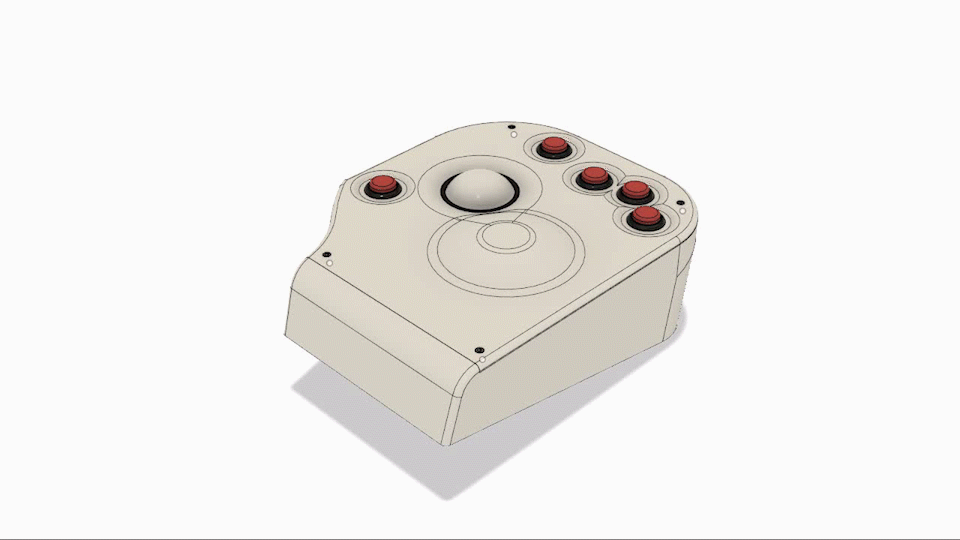 At this point the big hurdle was designing the mouse itself, which of course fell to Fusion 360. The main issues were getting everything to fit and to be as ergonomic as possible. With Fusion it was relatively easy to get the basics by taking a top-down picture of my own hand over the trackball assembly. That image was than overlaid in the CAD model as a canvas and calibrated to the correct size via the CAD model I had already made of the trackball. This allowed finding the correct placement of the 3 main mouse buttons under each finger. Note to those who may want to make their own: Small hands need not apply. This is very much designed for me.