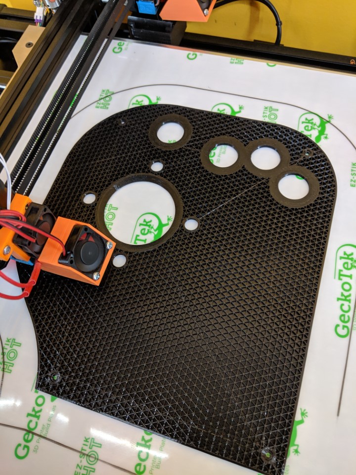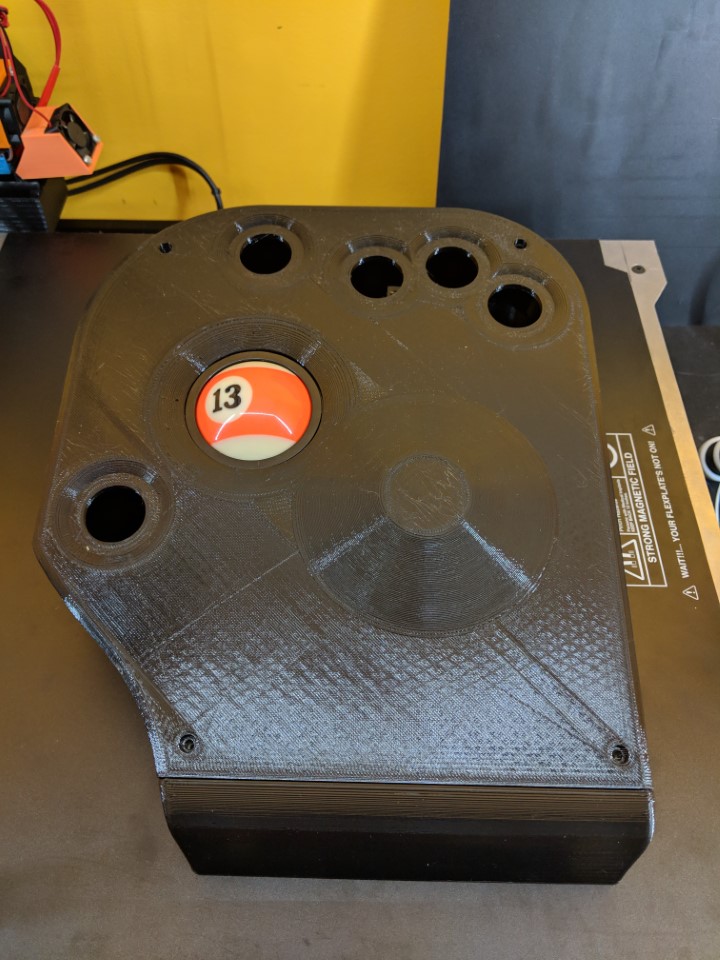 Remember, those are 24mm buttons and a 2.25” trackball! I would have preferred to make it smaller of course, but there was just no room for the hardware involved. And at that point I needed to have a built-in wrist rest to make it comfortable. Fortunately, I have a massive 3D printer which made short work of the case in only 2 pieces :)
