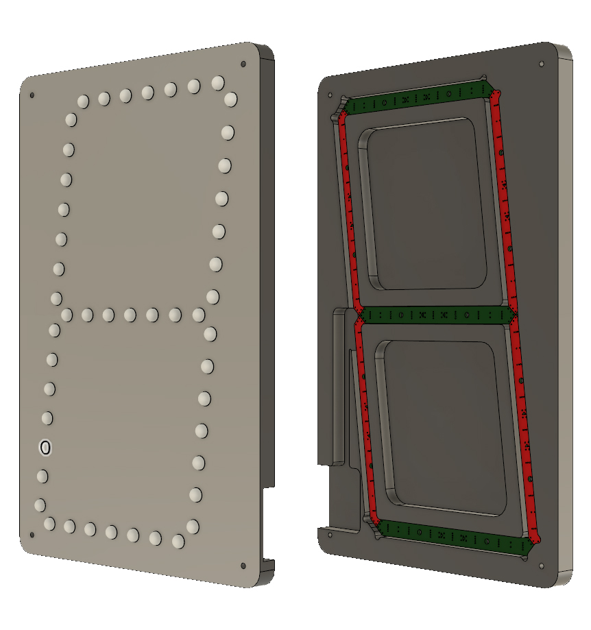 The green and red faces of the modeled PCBs specify which face is up. More about how all these connect in a bit.