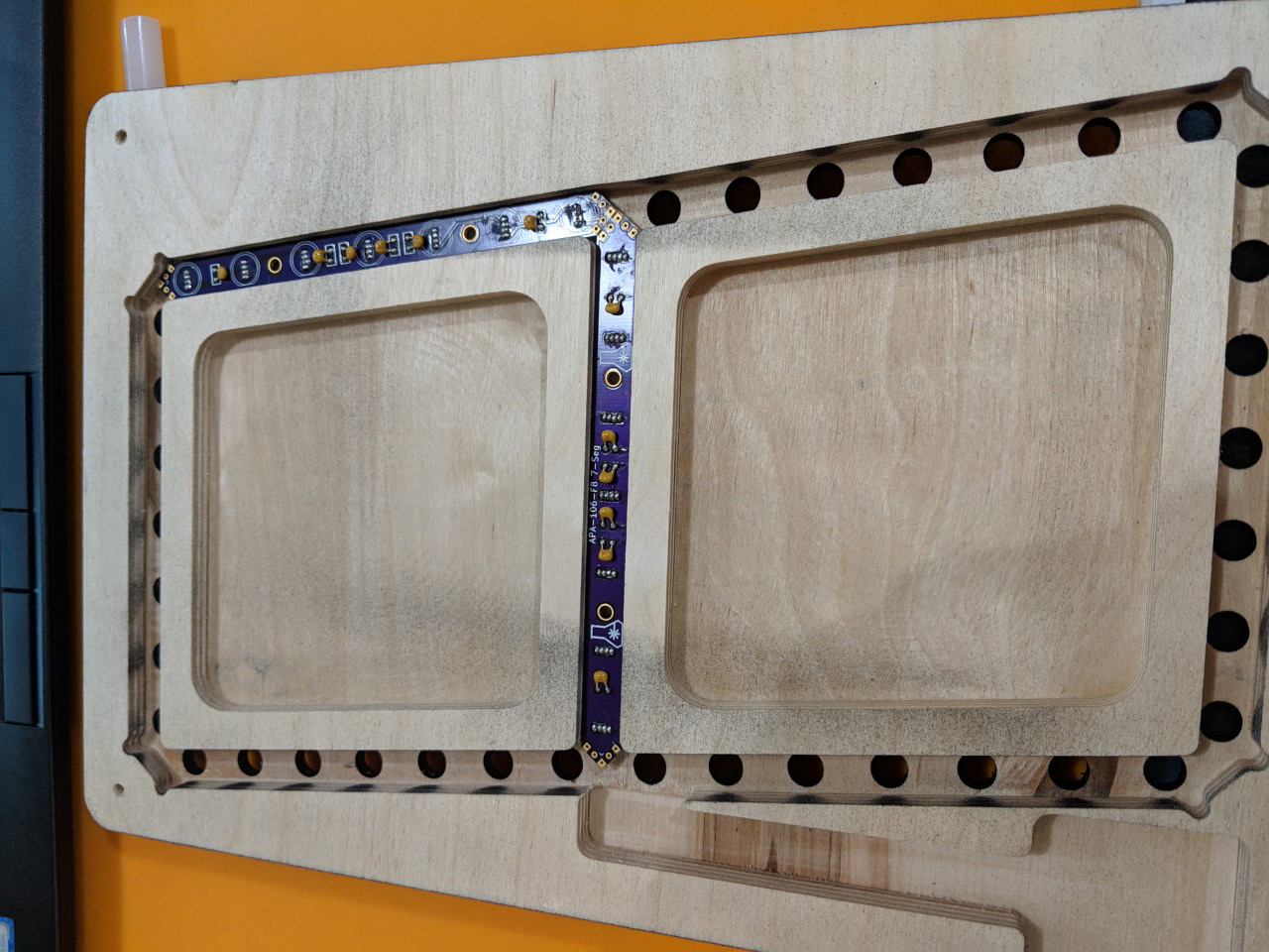 Though, as I write this I realized it might have made more sense to laser cut everything. I could use thinner 3mm or 6mm material for the front panel and just cut holes. The holes will align all the PCBs via the LEDs and once everything is soldered together, it’s really not going anywhere. Then just cut a spacer frame to offset a back-plate and it’s good to go. But hey, that’s why this is a prototype and this is only “Part 1” :)