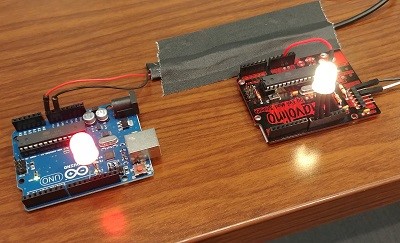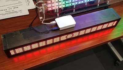 1D Pong - And now for something interactive! Challenge your friends to a game of 1-Dimensional Electronic Table Tennis with this Arduino project built for SparkCon 2107. An 8ft strip of LEDs serves as the playing field, with two WyoLum TinyTiM panels for the scoreboard. All of this is controlled by a Teensy 3.2 microcontroller.