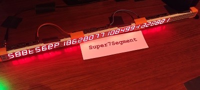 Super7Segment - A sneak peek at a new Maniacal Labs kit! One 7-segment digit not enough? Try twelve! It does numbers with ease, and even text! Each module is controlled with basic serial commands and can be driven by device with a serial port. In addition, the modules can be chained together for an even bigger display!